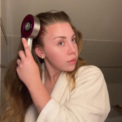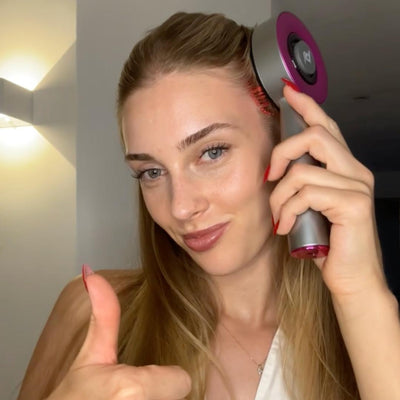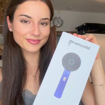 Das Rotlicht des BloomScratches hat mit 850 Nanometern Tiefe die optimale Intensität um deine inaktiven Haarwurzlen in der Kopfhaut wieder zu reaktiveren. So kann sich dein Haar in voller Fülle entfalten.